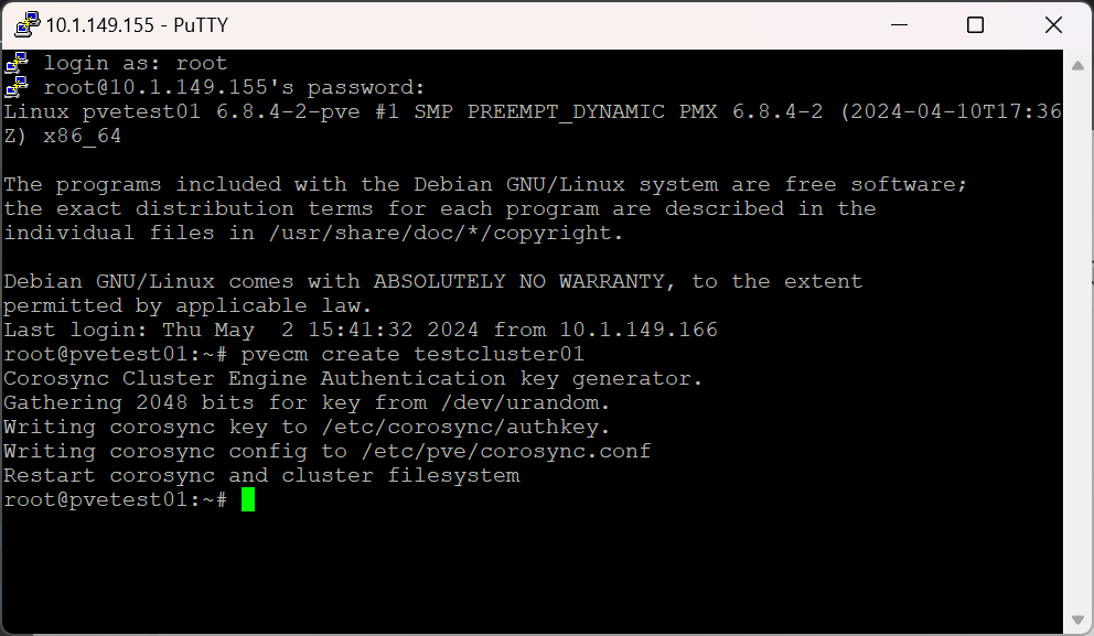 As you can see above, the creation of the Proxmox cluster is super easy via the command line.