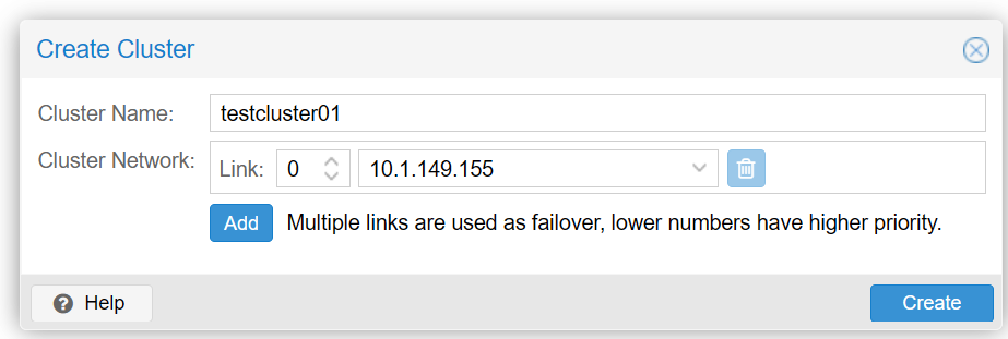 Beow, we will use the Proxmox GUI to create a new cluster. Begin by navigating to Datacenter > Cluster > Create Cluster.