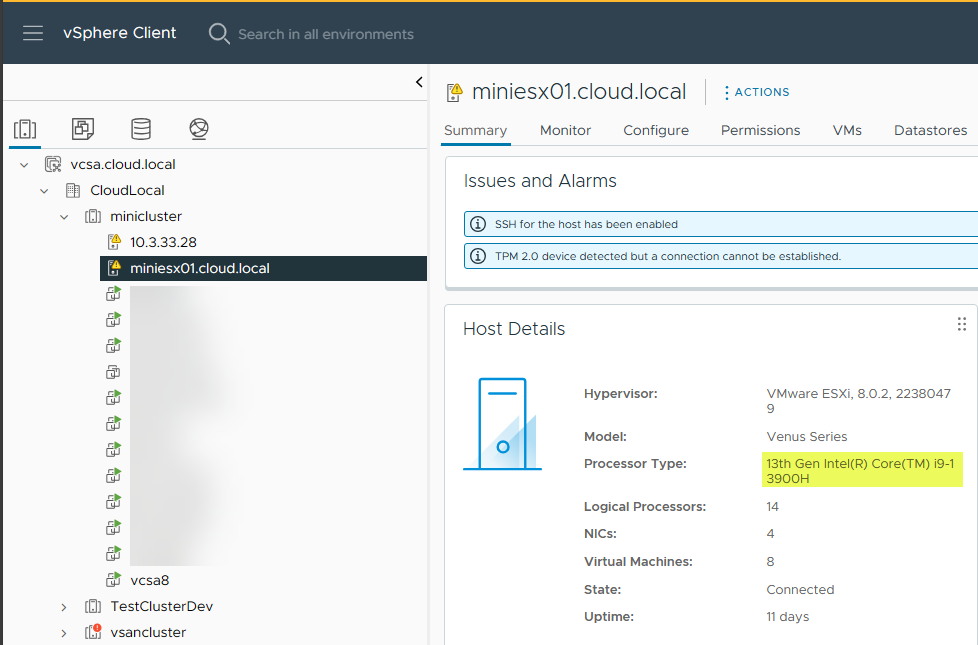 So, to get a quick and dirty VMware cluster configured, I went ahead and placed two mini PC hosts in the same cluster, even with the dissimilar processors.