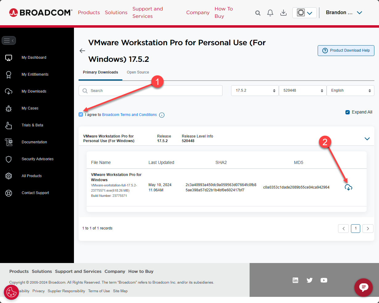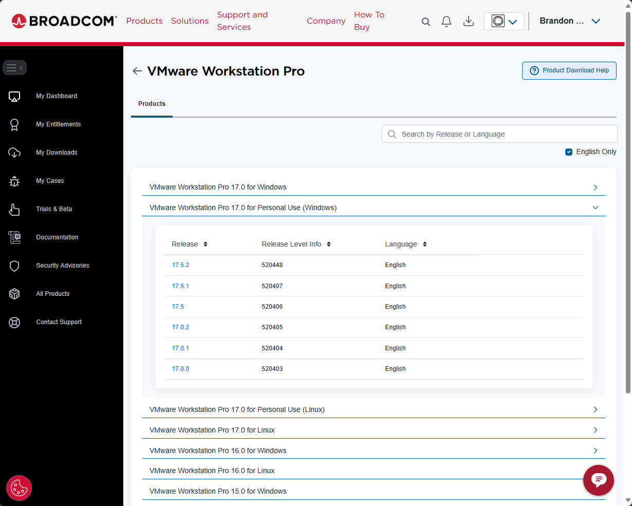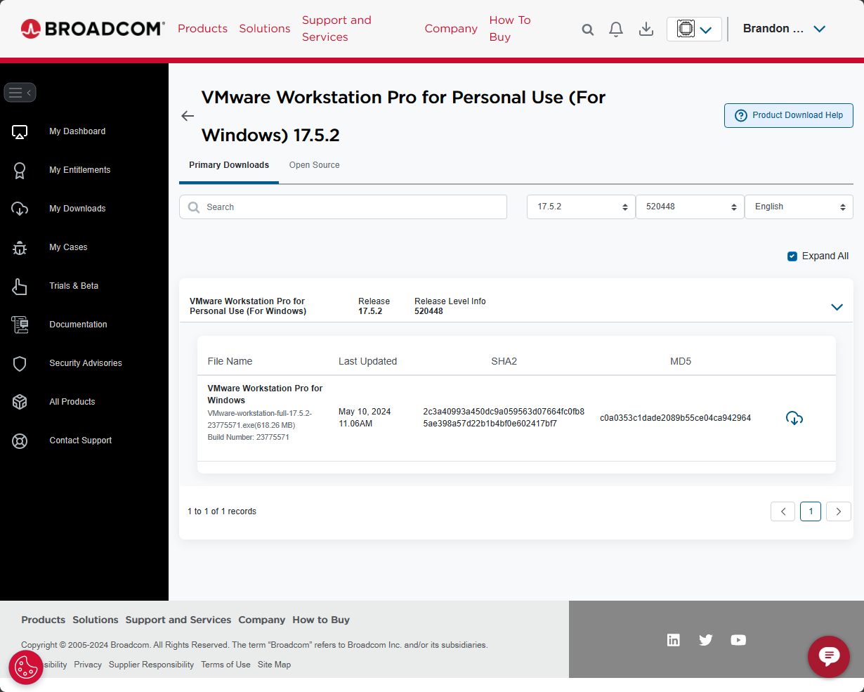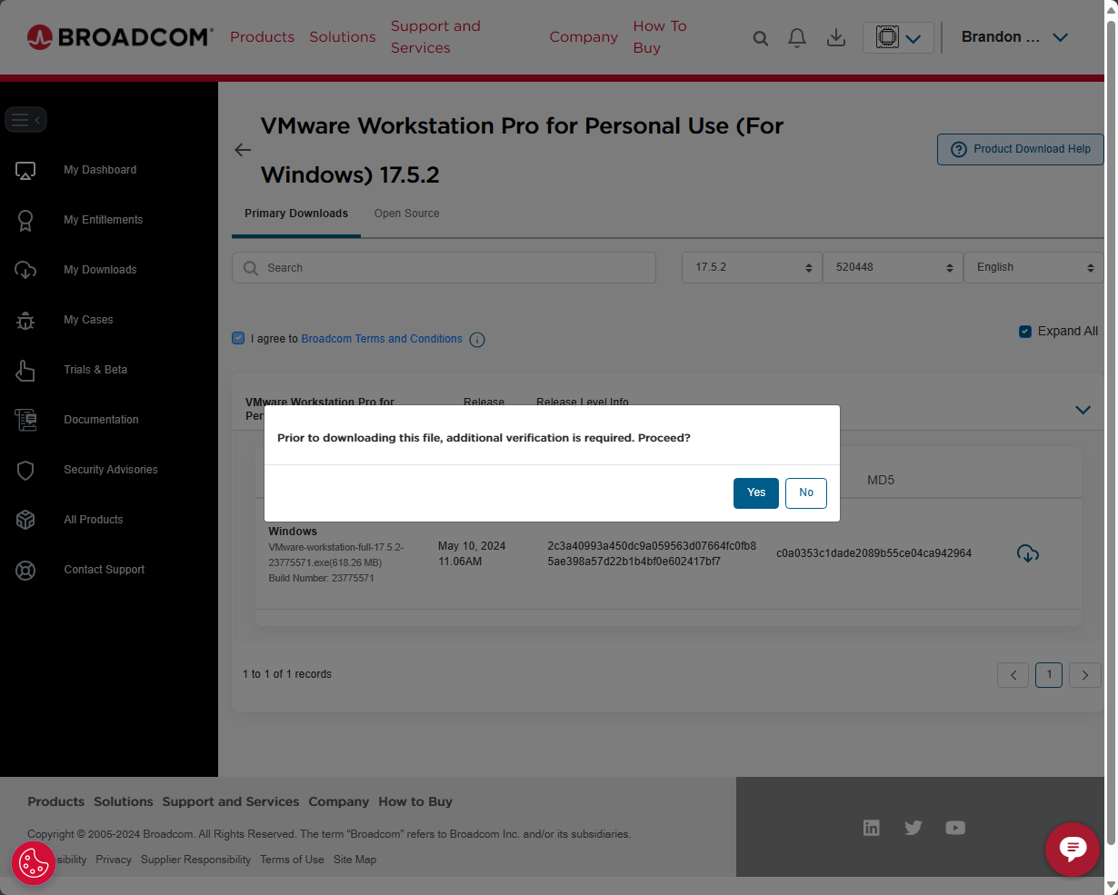 Be sure to sign up for a Broadcom support portal account. Even though I had a VMware portal account, i had to re-signup for logging in to the Broadcom portal – support.broadcom.com. Download VMware Workstation Pro for yourself and check out the features.