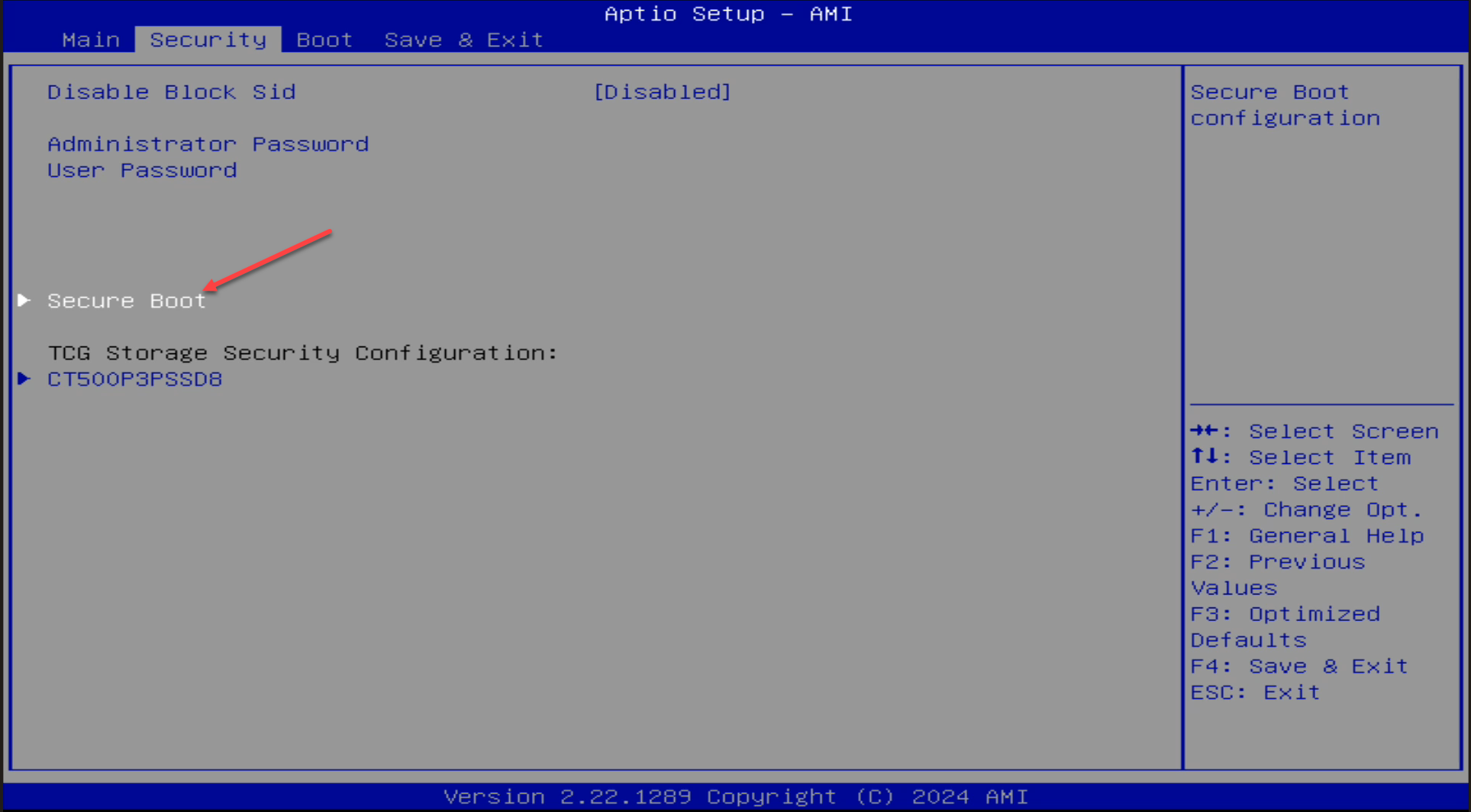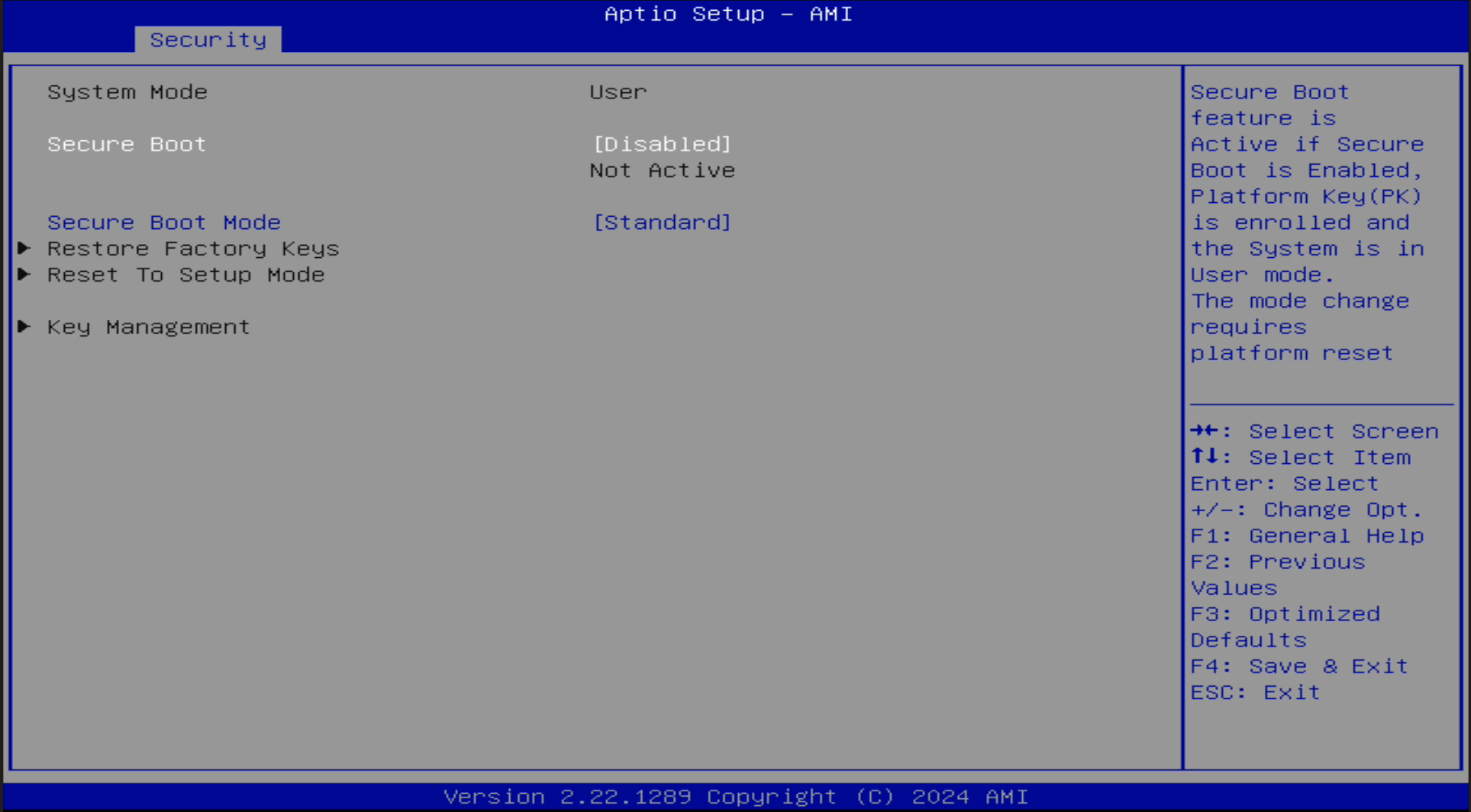 However, that didn’t work either after setting the passwords and rebooting the AE7 back into the BIOS. I had to reinstall the factory NVMe drive and then it allowed me to go in and change the secure boot setting. This is the first time I have seen that before. Generally you can go in and change the secure boot setting as an administrator in the BIOS. Do keep this in mind.