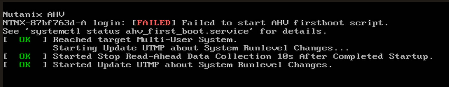 The first boot scripts failed due to the fact that the CVM virtual machine wouldn’t start. The reason it wouldn’t start is due to a PCI device that it was complaining about: