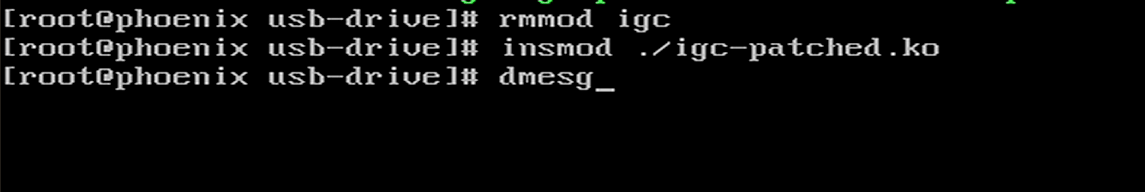 Once you have the modified .ko file for the Intel 2.5 G network adapter, you will need to mount your USB drive that you have the file on and remove the old module and add the new one.