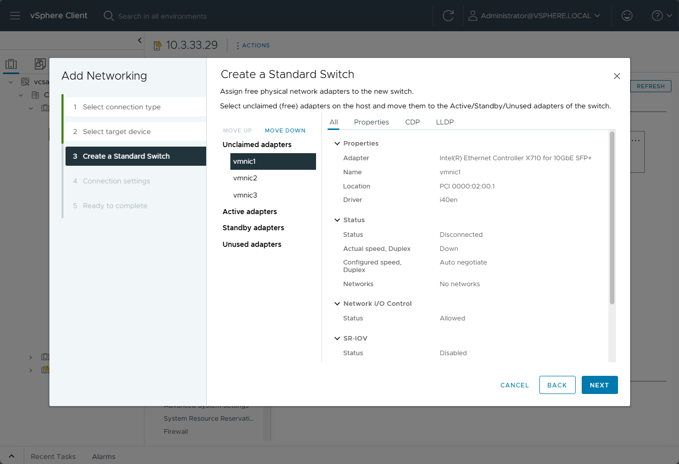 - Standard (Recommended) – This will place the hosts into maintenance mode during the configuration. The process can take a while to complete. This is what you would want to select in production environment.