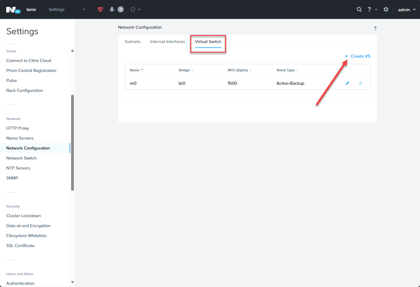 You can click the + Create VS to create a new vSwitch in Nutanix.