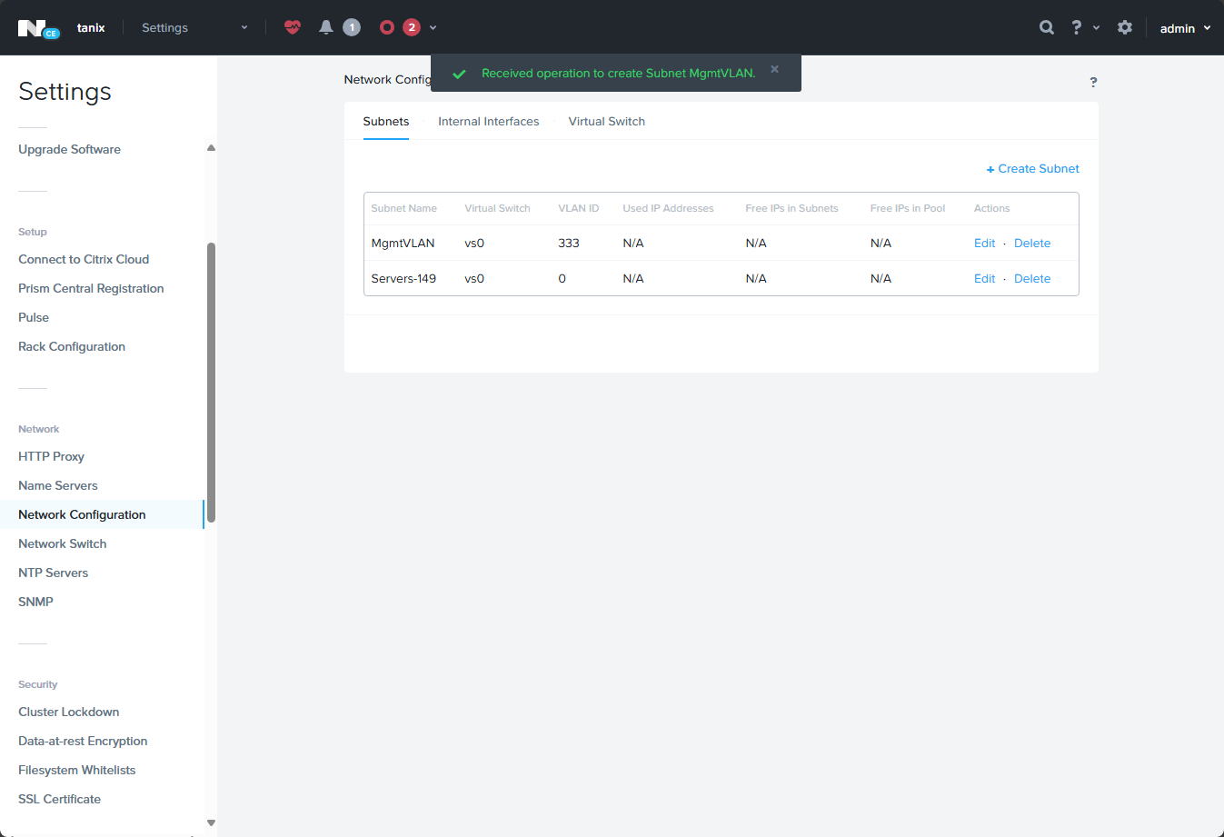 Nutanix AHV uses network subnets with the Open vSwitch configuration, which is similar to the VMware port group. In the ;network subnets configuration in Nutanix, you can assign a specific VLAN ID to a Virtual Switch