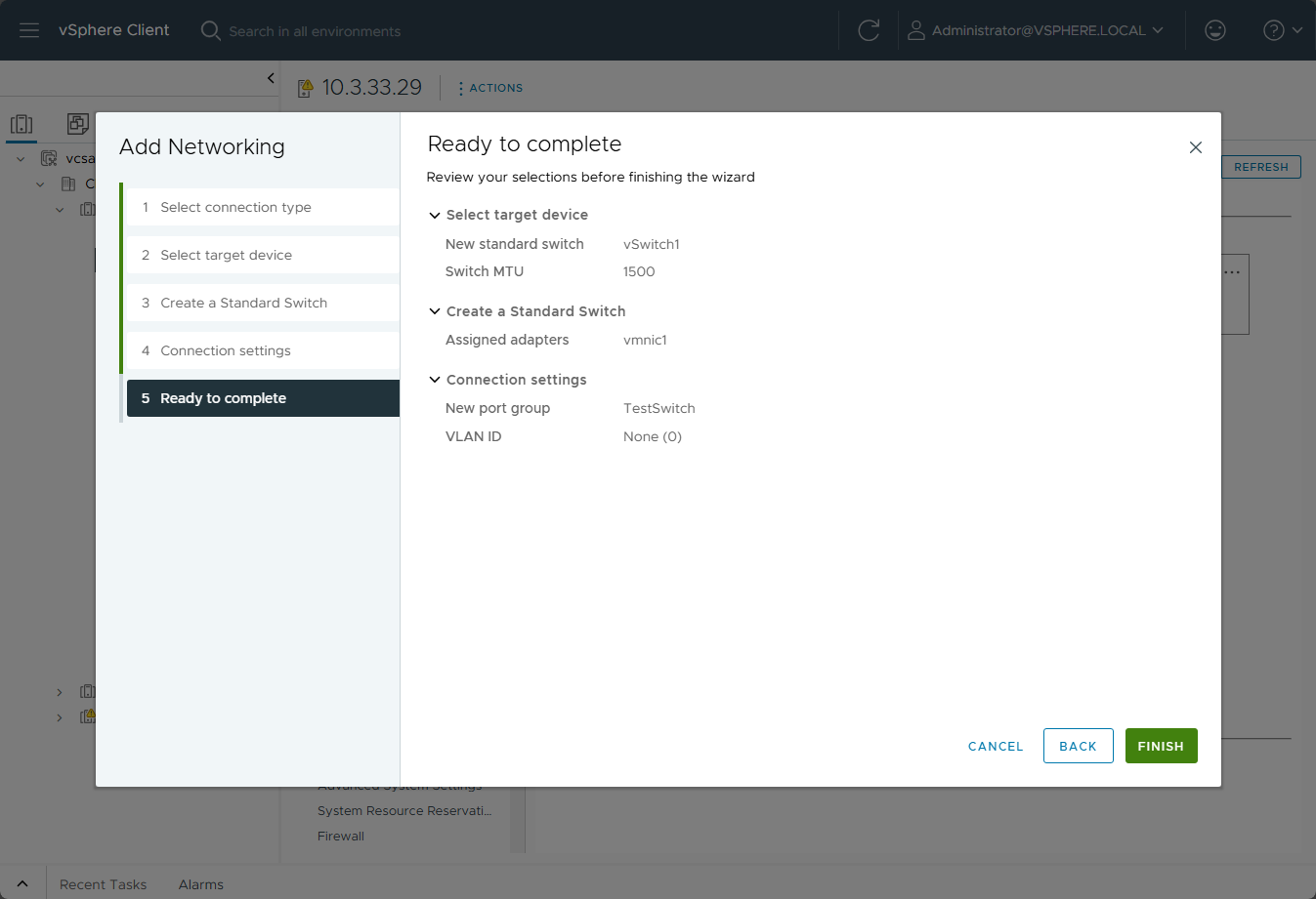 Ready to complete the configuration of the new virtual switch. Click Finish.