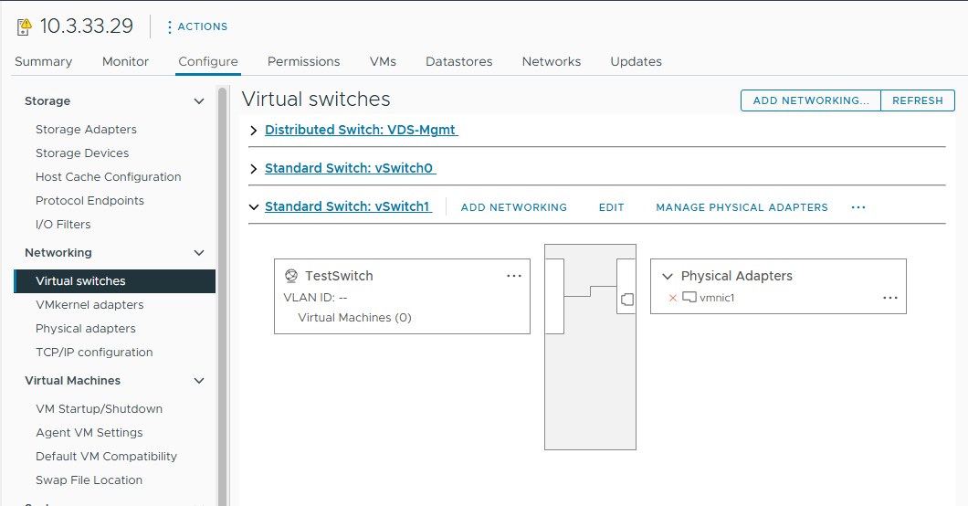 - Quick – This method is the quickest. It won’t place the host in maintenance mode, but production workloads might experience a brief interruption as the networking is reconfigured.