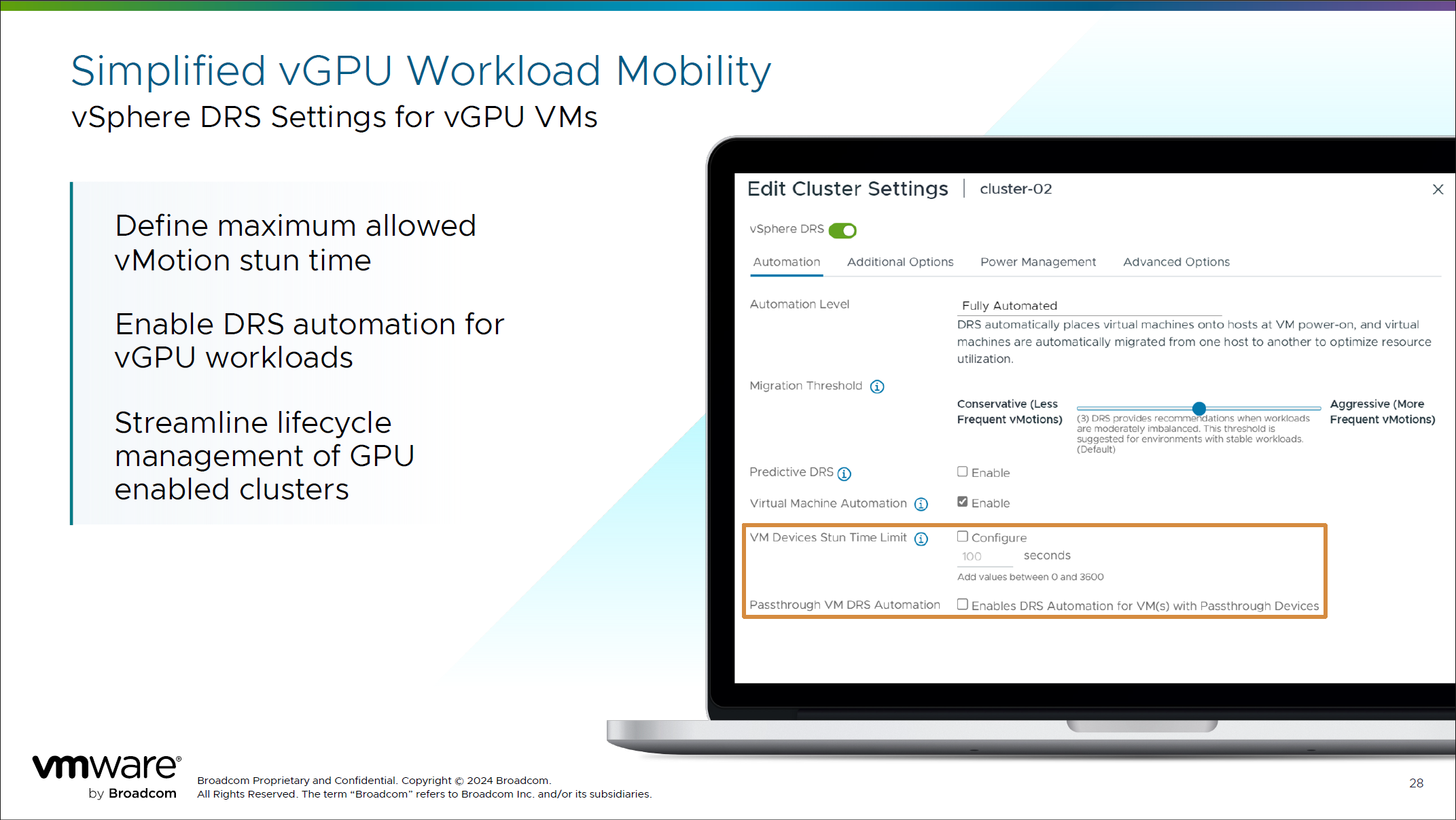 There is also simplified vGPU workload mobility with vSphere DRS settings for vGPU VMs.