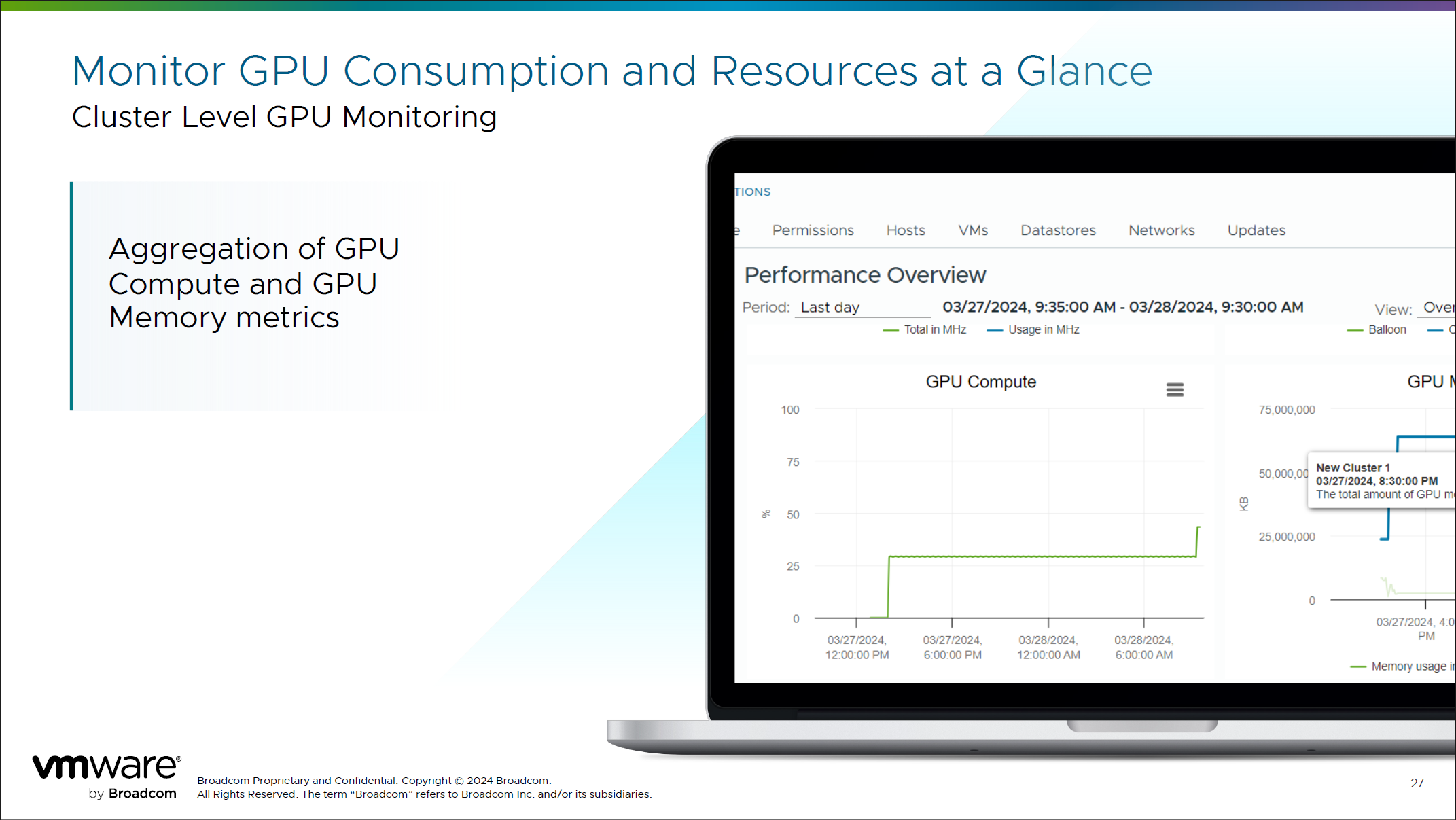 You can also monitor the GPU resources at a glance in the cluster level GPU monitoring dashboard in vsphere 8.0 Update 3.