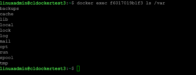 Below, we are listing out the contents of the var directory in our container we are exec’ing into.
