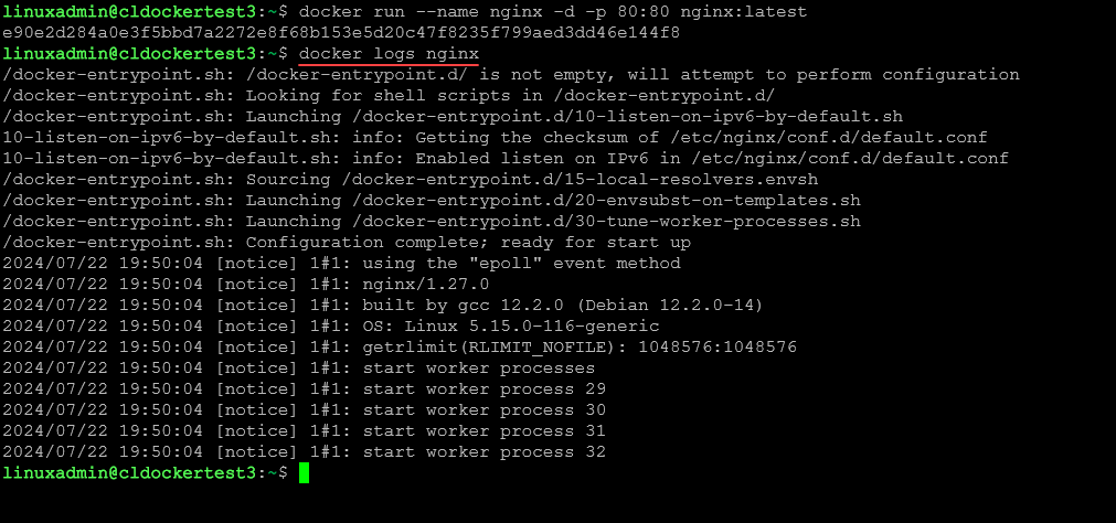 Here, we are pulling the latest nginx container image.