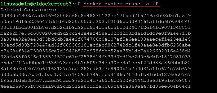 The docker prune command removes unused container data. It is a great command line command to help clean up unused containers, Docker volume objects, images, docker networks, and build cache from the command line interface. If you have disk space issues on your Docker container host, this is a great command to remember, especially the docker system prune -a -f command.