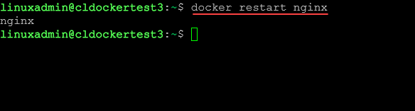 Below, we are restarting a running nginx container.