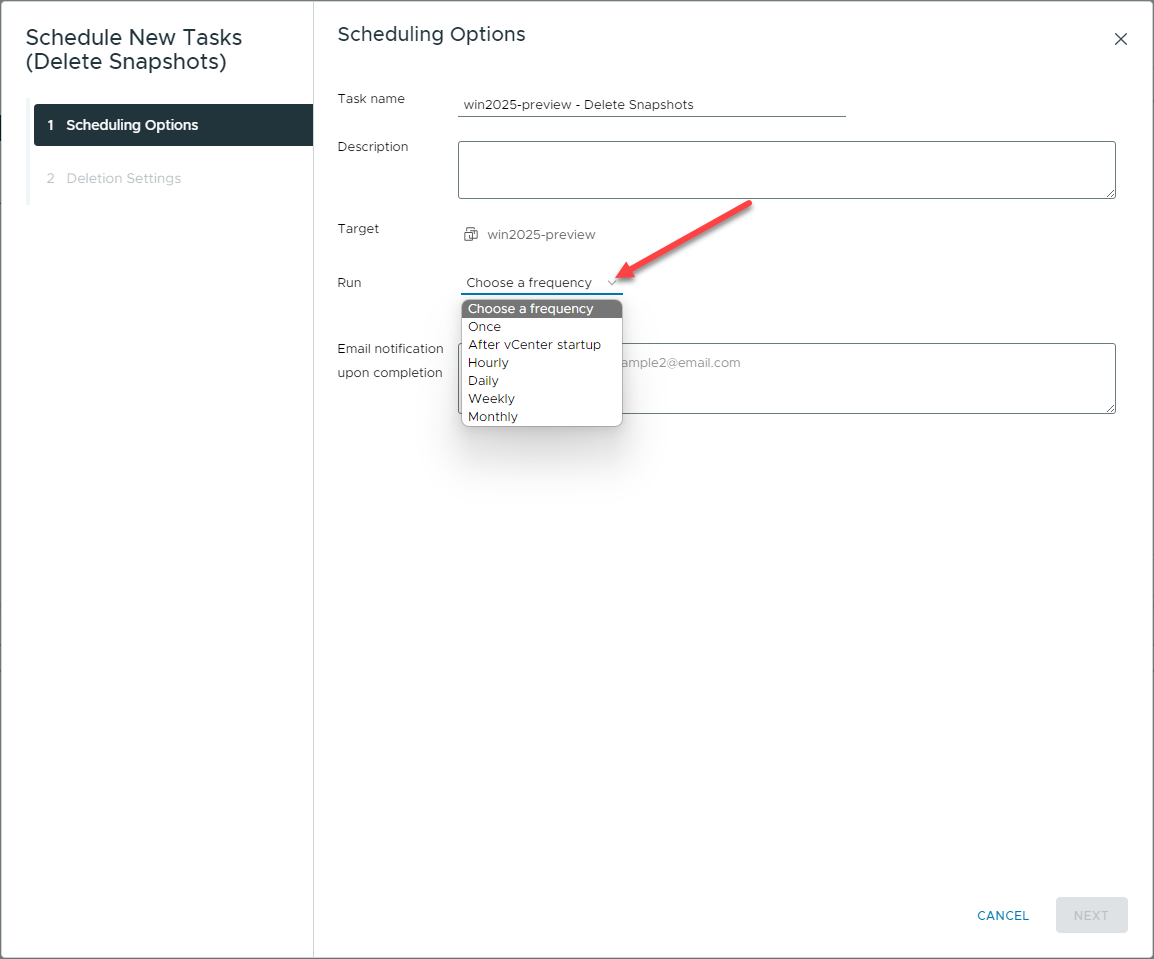 New with vSphere 8.0 Update 3, you can delete snapshots for virtual machines using a new Snapshot Deletion scheduled task. A new scheduled task can be scheduled to delete snapshots on a virtual machine that are older than a certain number of days.
