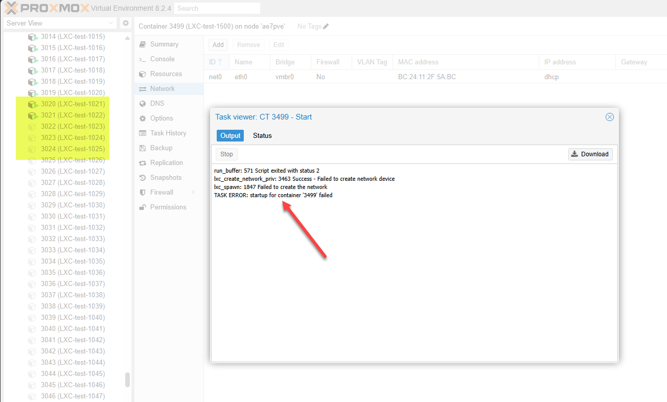 I ran into an interesting problem that seems to be a limitation with the Linux bridge. I noticed that the containers spun up and powered on, seemed to add up to around 1024 containers and not anything higher. While the other LXC containers were created by Terraform, they were not powered on.