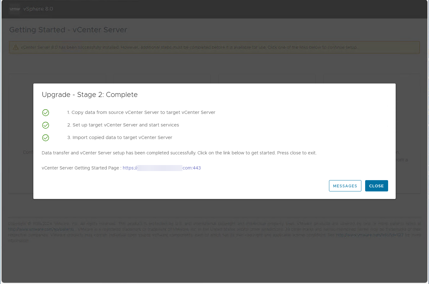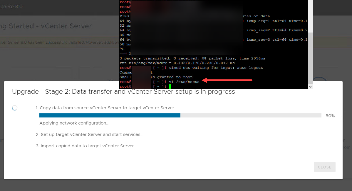 You should see Stage 2 complete successfully and you should be able to access your new vCenter Server by the old vCenter Server name.