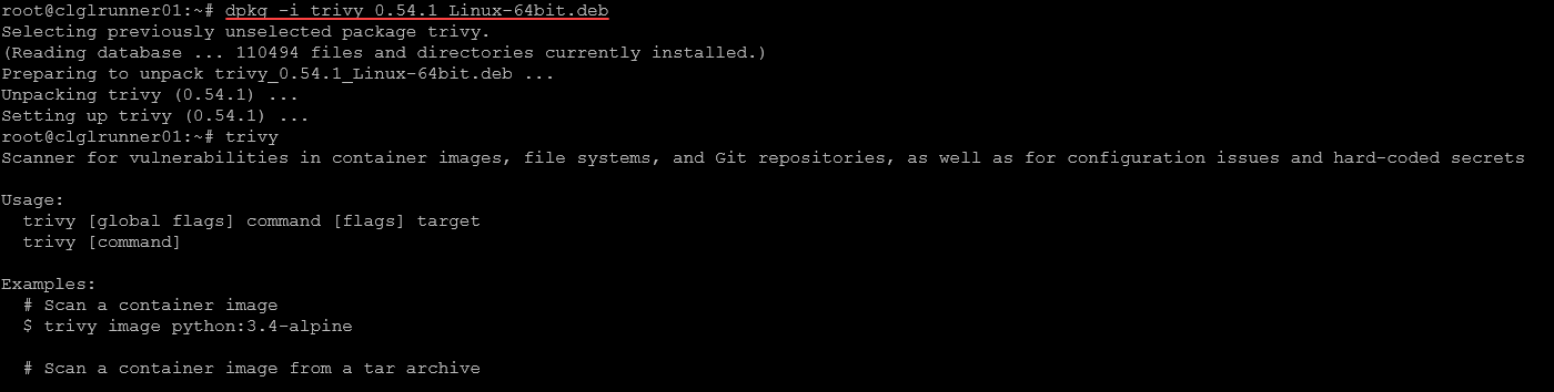 dpkg -i trivy_0.54.1_Linux-64bit.deb