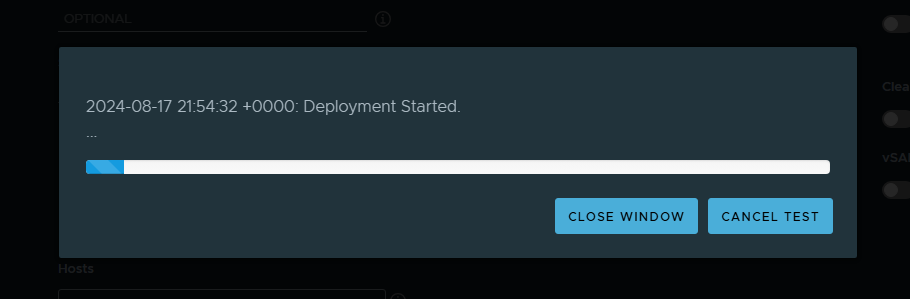 Once you kick off a run of vdbench using hcibench, you will see it start the deployment of test virtual machines that match the specs of the VMs configured in the screen above.