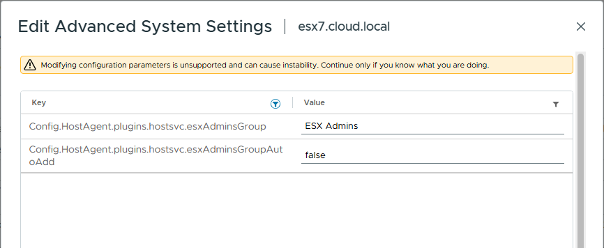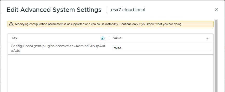 Config.HostAgent.plugins.hostsvc.esxAdminsGroupAutoAdd from true to false