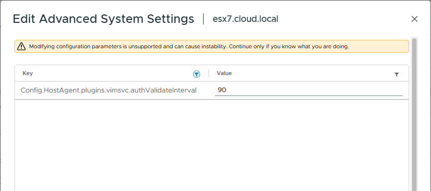 Config.HostAgent.plugins.vimsvc.authValidateInterval from 1440 to 90