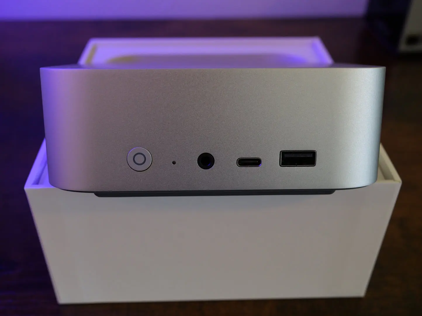 The front of the Beelink Sei14. You have the audio jack, USB-C, and USB-A ports.