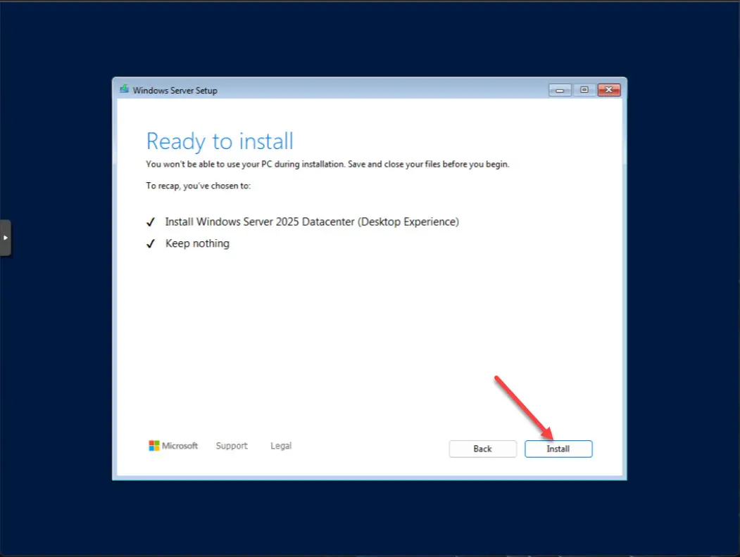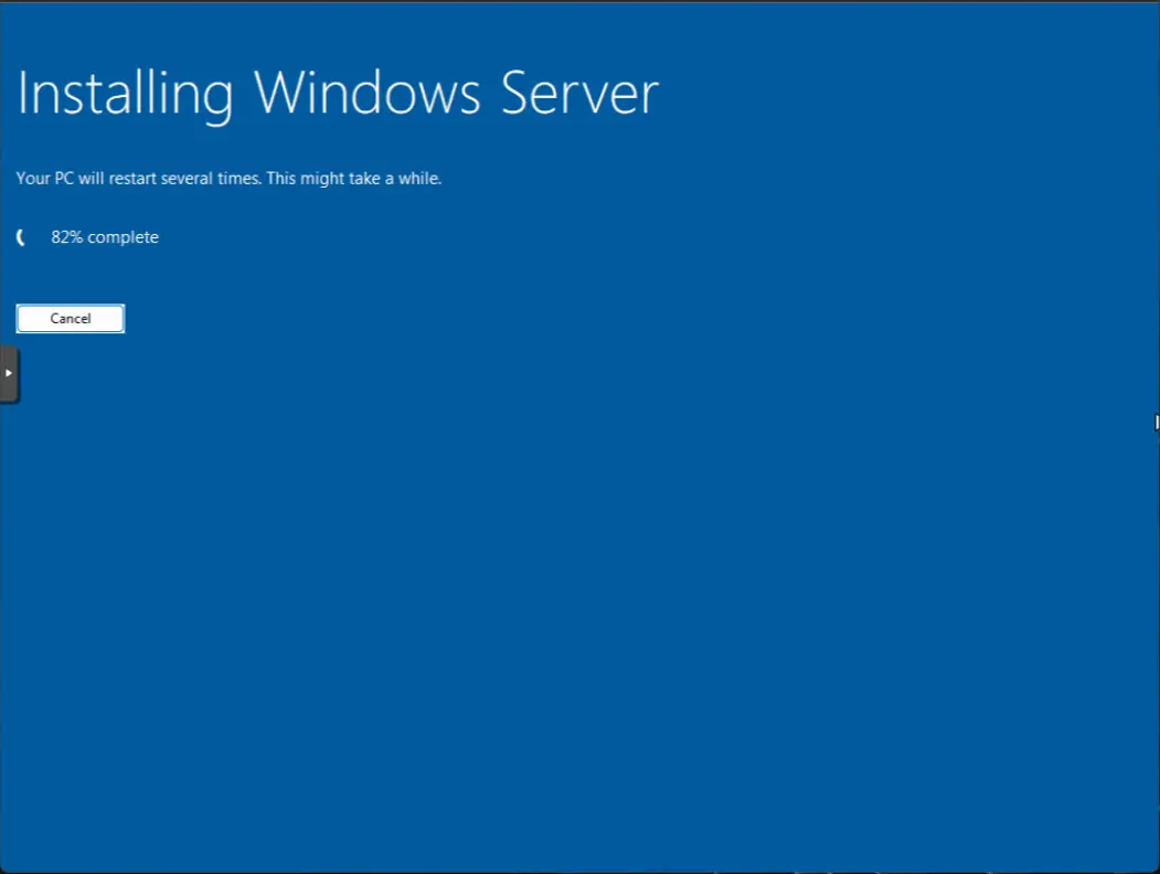 The installation will begin. That is the end of user input during this phase of the install. Sit back and wait for Windows Server 2025 to install.