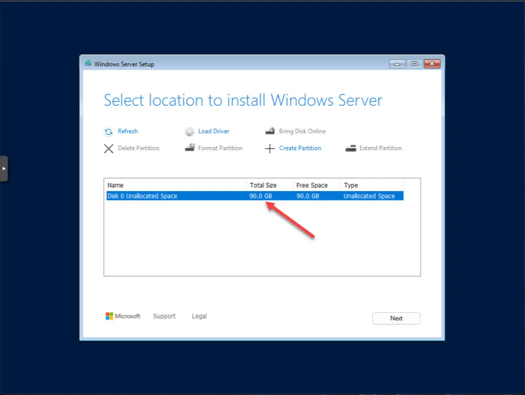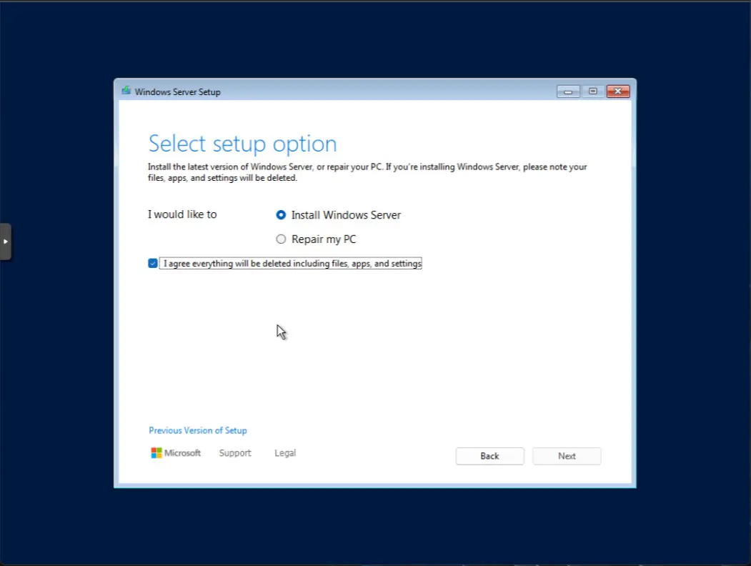 Next, we will select setup option for installing Windows Server. Here we will have the choice to: