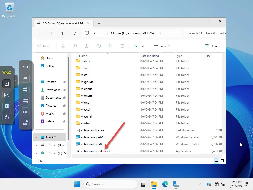 Launch the virtio-win-guest-tools package and follow the installation instructions of the wizard of the VirtIO driver disc.