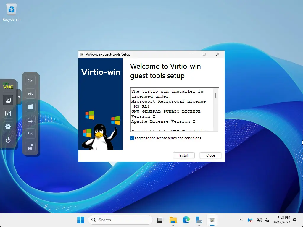 This will begin the Virtio-win guest tools setup. Accept the EULA and click Install.