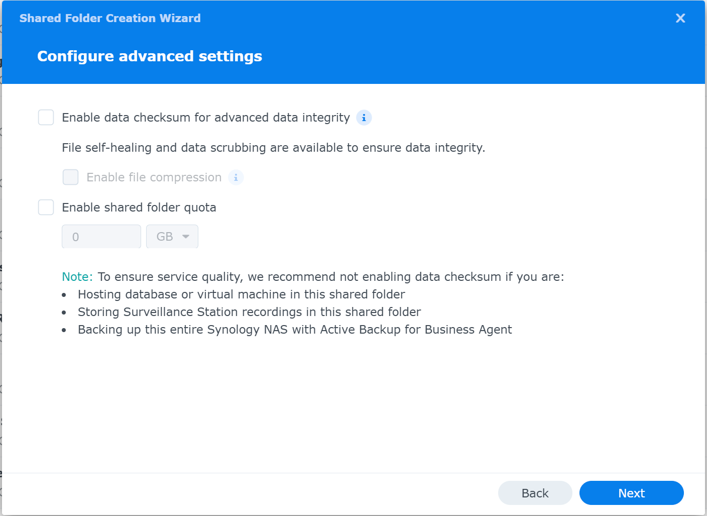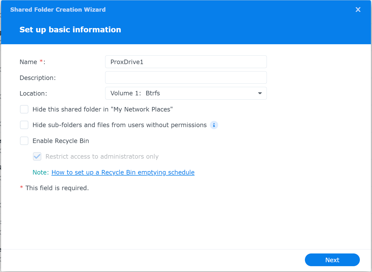 You will want to create a new shared folder on your Synology NAS if you don’t already have a folder you want to use.
