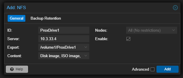 So, it doesn’t take long or much configuration to add this type of storage in your Proxmox environment and the process worked flawlessly. I like to use NFS for these types of storage. When it comes to creating a datastore for running VMs, I tend to use iSCSI just due to the advantages it b