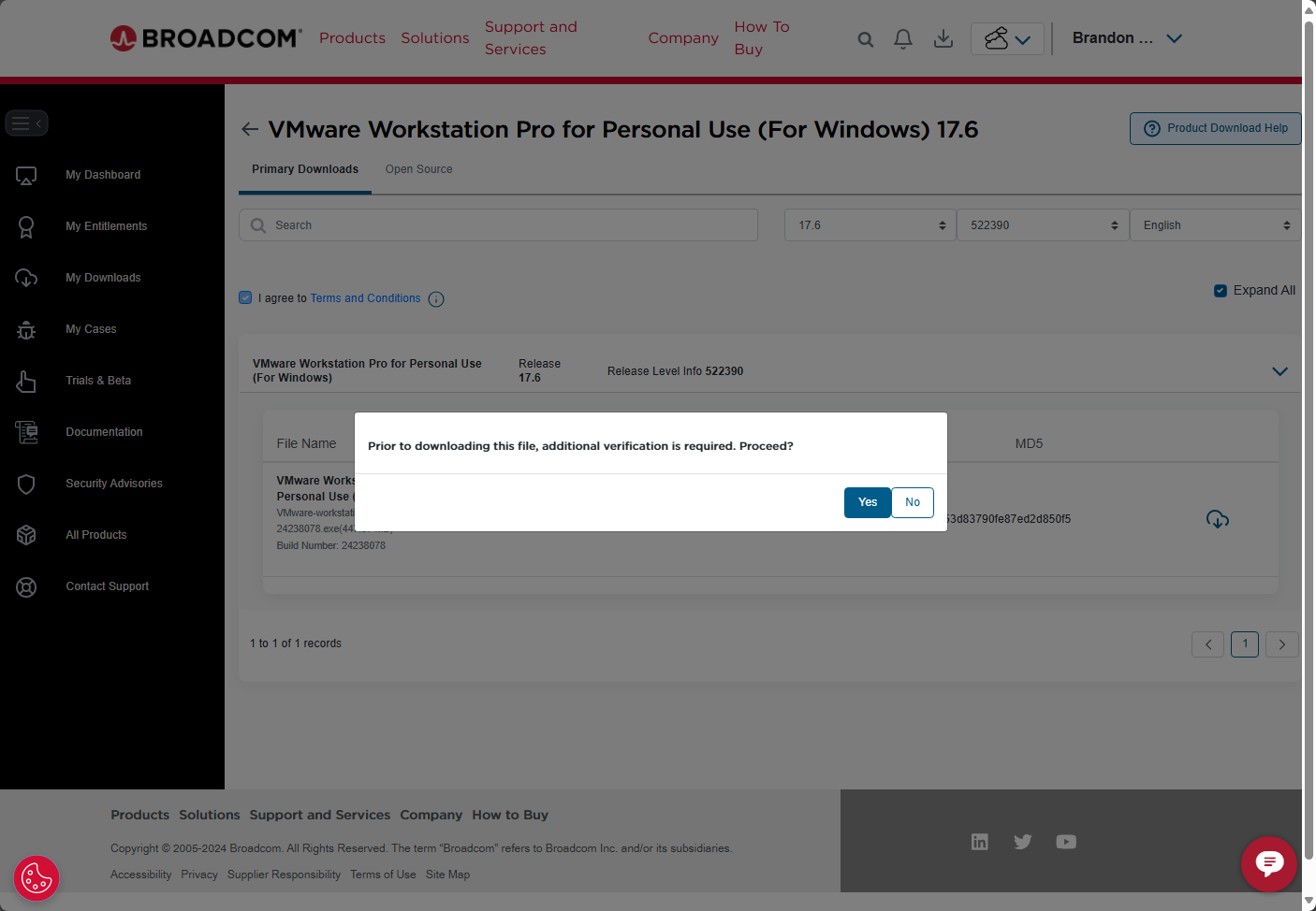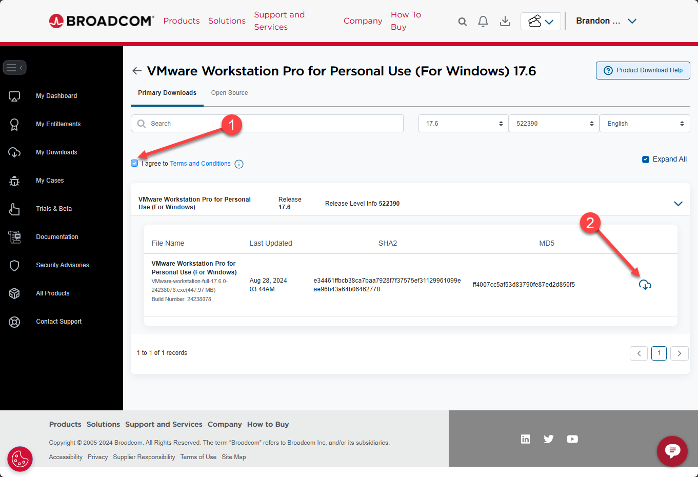 The newly released VMware Workstation 17.6 Pro update brings new operating systems to the table, both from a guest perspective, and from a host perspective on which you can install VMware Workstation 17.6 Pro in a supported way. Unfortunately, as shown, the upgrade process is going to be much more cumbersome than simply clicking through the download process in the VMware Workstation 17.x interface. Hopefully, this will be a one time process that will switch the backend over to streaming future updates from Broadcom without having to go through the cumbersome download process in the Broadcom support portal.