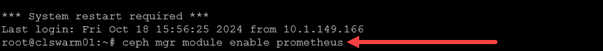 After enabling, it is a good idea to make sure your Ceph hosts are listening on the exposed port of 9283. Below, you can see we can use the command: