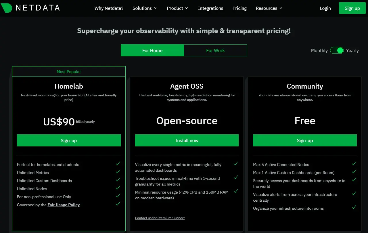 Also, really cool to know is that Netdata is no offering a Home Lab plan that has literally EVERYTHING included as with the business edition. You get unlimited metrics, custom dashboards, nodes, but no support, which is perfect for home lab enthusiasts looking for a great solution at a reasonable price at only $90/year, which I think for a fully-featured monitoring solution in the cloud is an extremely good price.