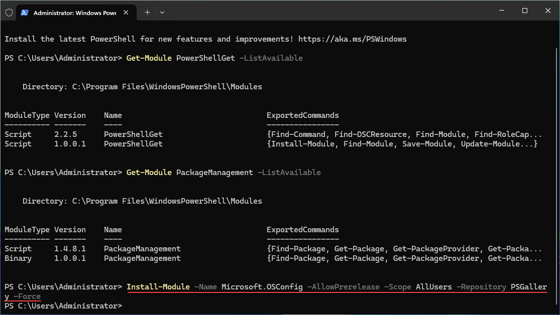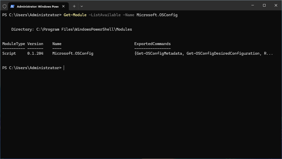 Get-Module -ListAvailable -Name Microsoft.OSConfig