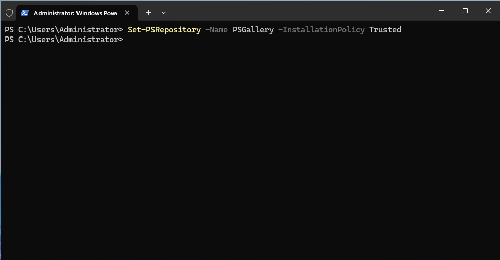 Set-PSRepository -Name PSGallery -InstallationPolicy Trusted