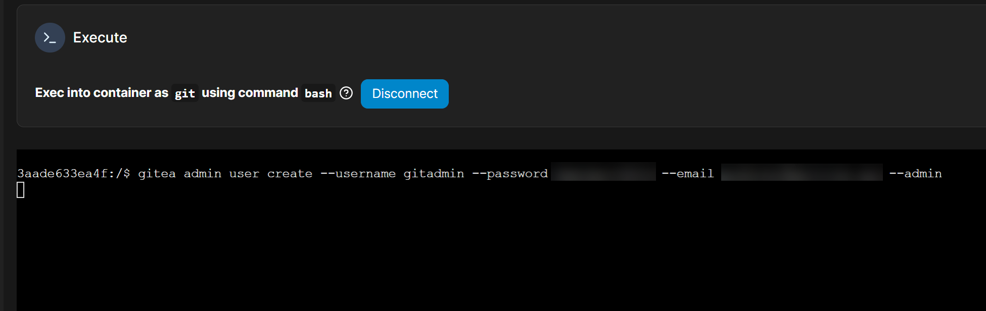 gitea admin user create --username superadmin --password password --email [email protected] --admin