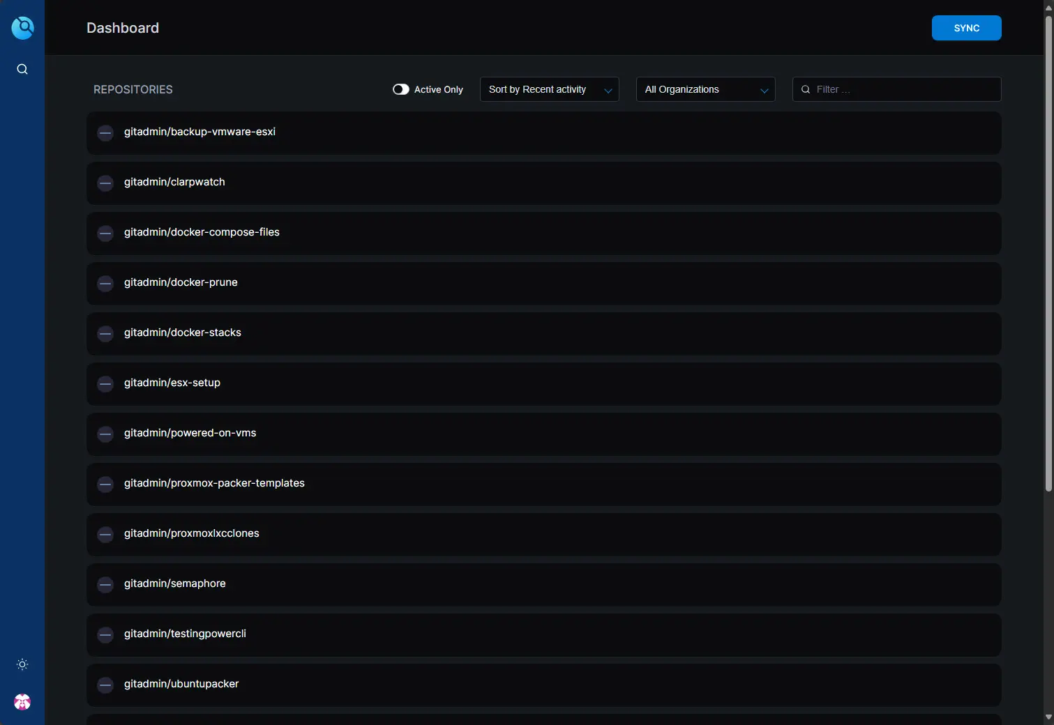 Below is a look at my Gitea repositories screen after I had migrated over several repositories from Gitlab.