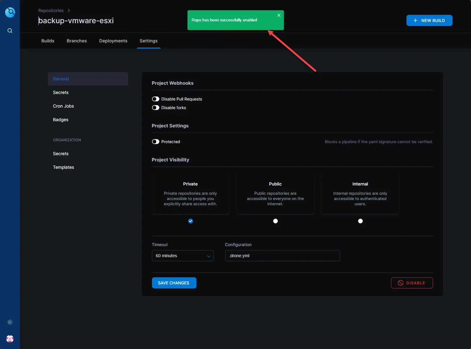 To CI-enable the repo, you need to Active Repository inside Drone.