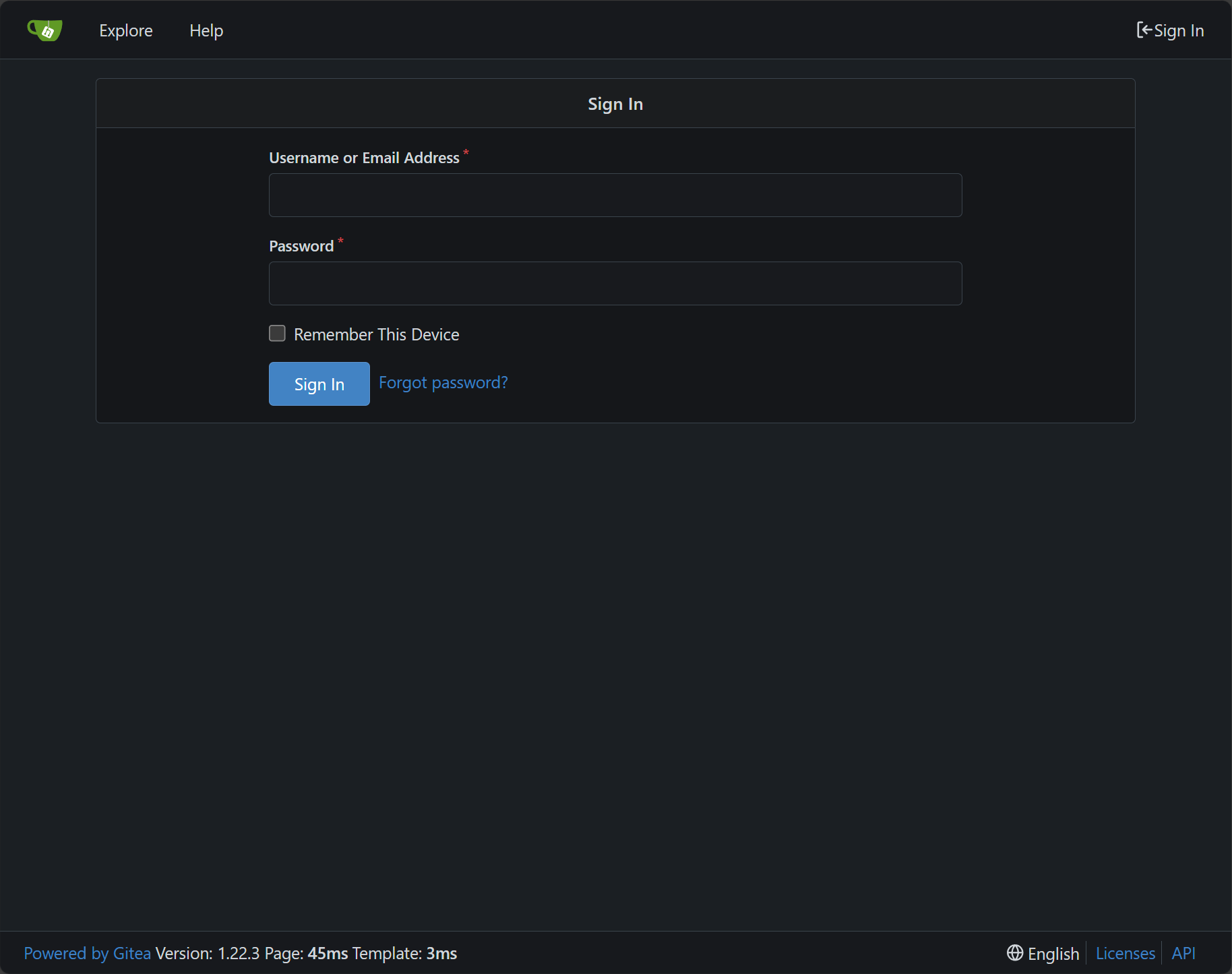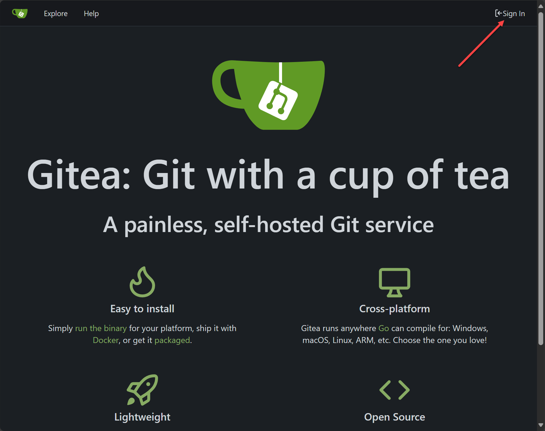 After you get your admin user squared away, you can navigate out to your Gitea address and click Sign In.