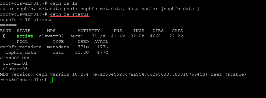 With CephFS, you can have highly scalable storage on top of Cephโs object storage system (RADOS). With it, multiple clients can access and share files across multiple nodes with the underlying protection of replicated data between the hosts. So, you can have high throughput and fault tolerance for your data.