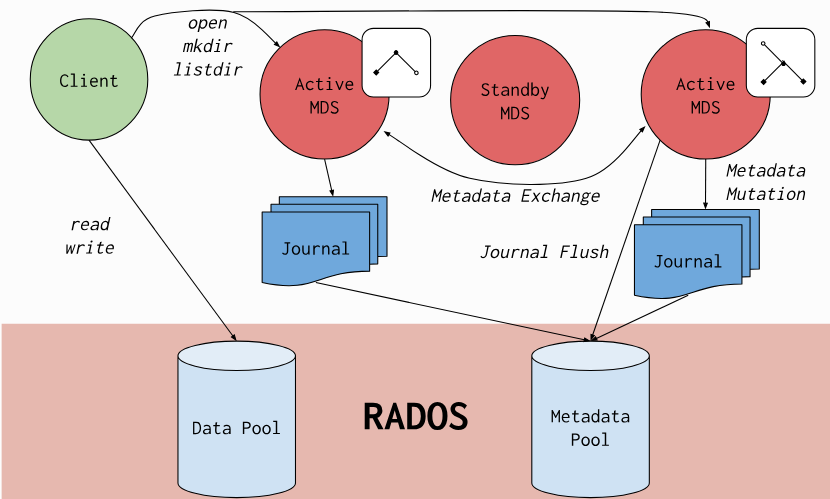 Compared to GlusterFS, CephFS has many more components, including things like: