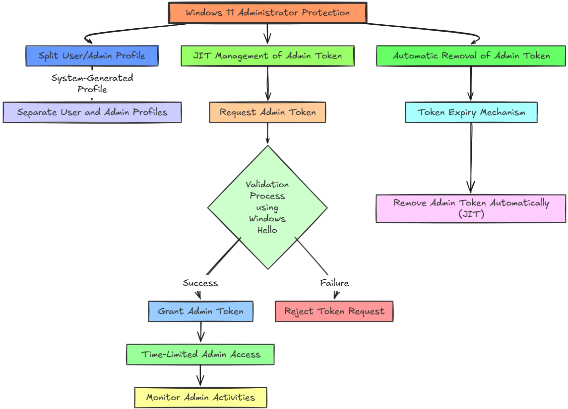 Below is an overview of the workflow of the new local Administrator Protection feature in Windows 11: