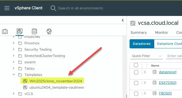 When you run the initialization and build, you will see your Windows Server 2025 virtual machine created in your vSphere inventory: