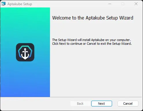 For me, the installation finished very quickly and you can automatically launch Aptakube after the installation.