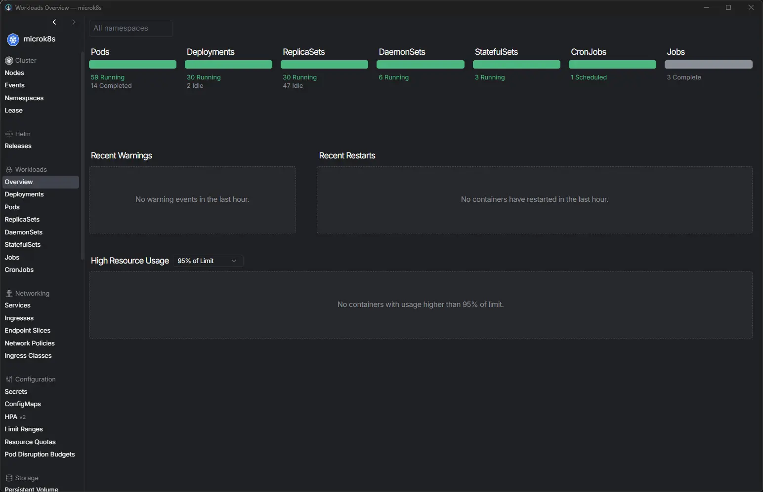 Also, you don’t have to install an agent pod of sorts for Aptakube. It uses what Aptakube calls a zero-config model that requires nothing to be installed in your cluster. It uses your existing kubeconfig file.
