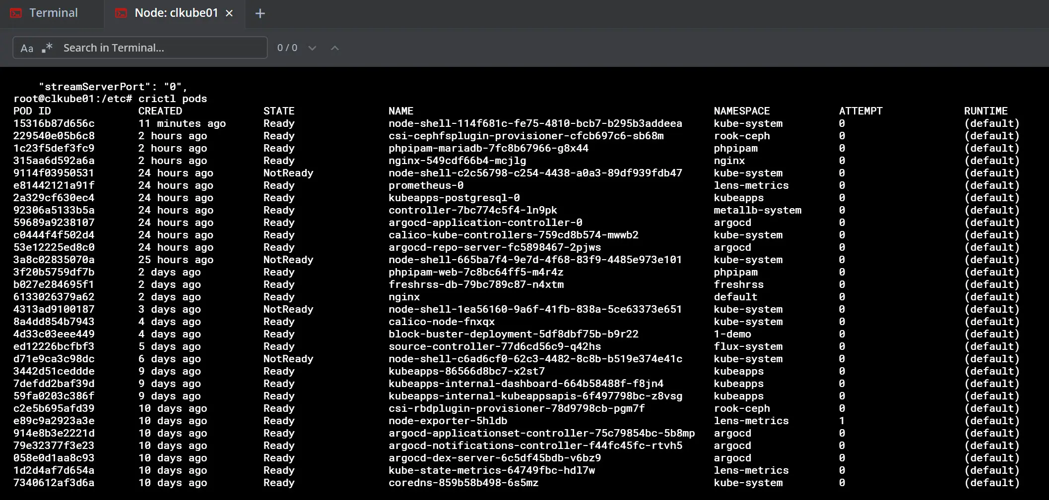 crictl excels in node-level debugging, especially when the Kubernetes API server or kubectl commands aren’t helpful.