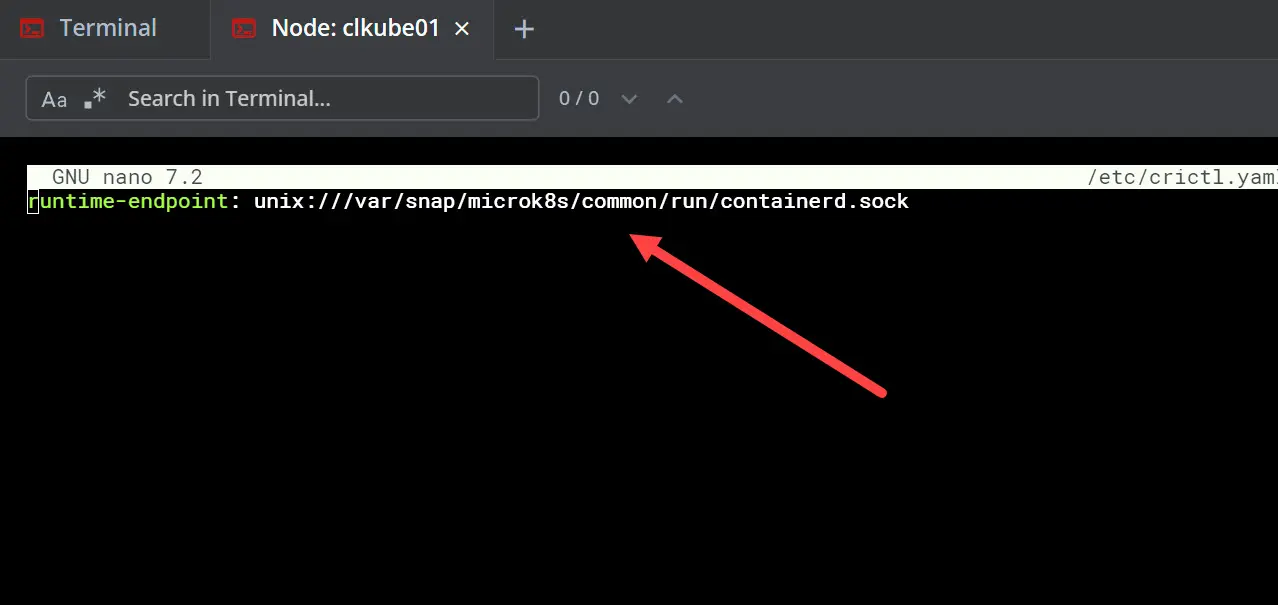 runtime-endpoint: unix:///var/snap/microk8s/common/run/containerd.sock