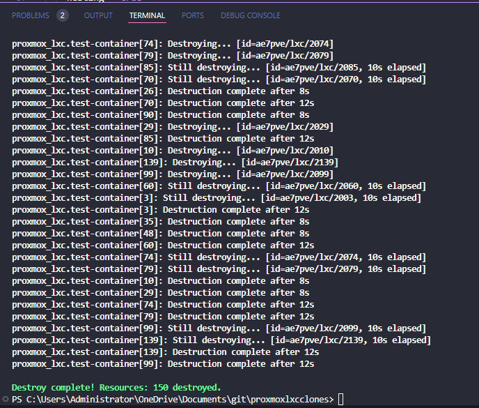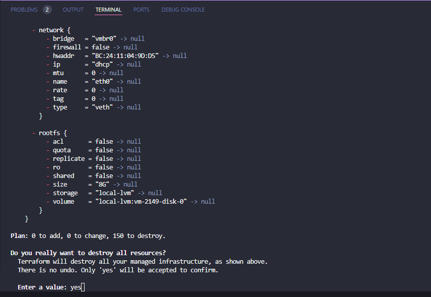 After issuing the confirmation yes to the command, it will begin the destroy operation.